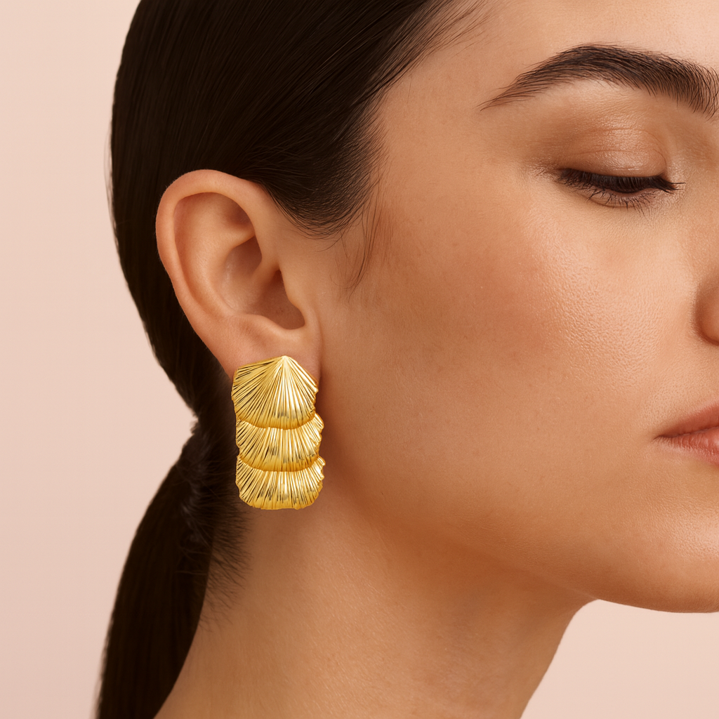Gold Crinkle Studs Earrings